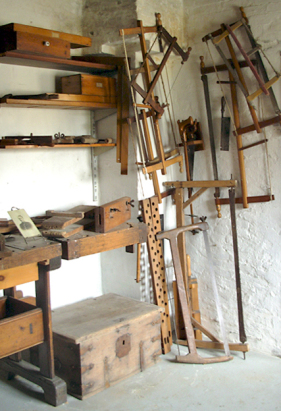 Here you find Olsen`s workshop from the end of the 19th century with all his tools: Planes, saws, nails, sandpaper, and work bench.