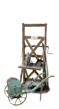 Here are beet tools, hoes, sowing equipment, graincleaner, plows, scythes, rakes, boatswain- and blacksmith tools, Jens Weigher`s tools, bricklayer`s tools and many more things.